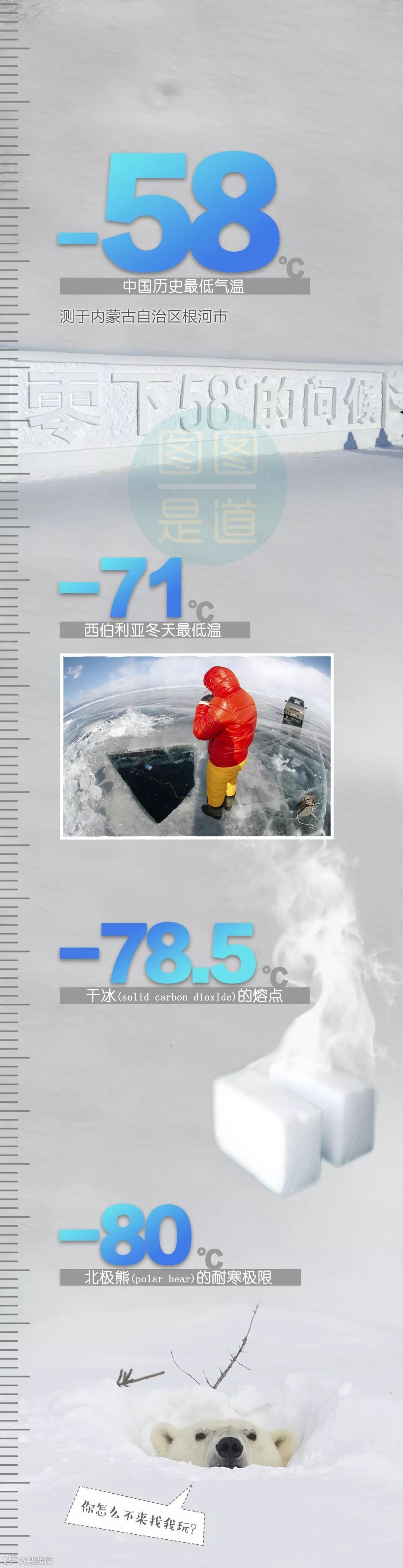 -78.5℃ 干冰(solid carbon dioxide)的熔点-80℃ 北极熊(polar bear)的耐寒极限