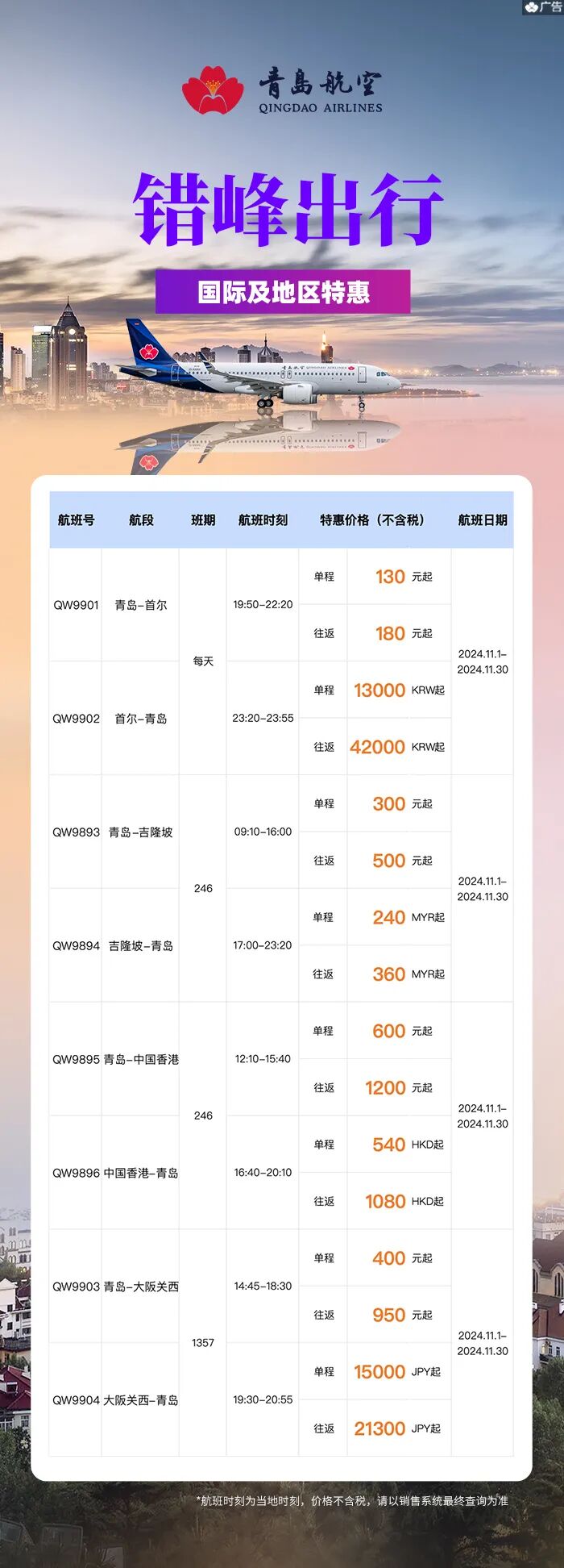 关注青岛航空,为您的出行提供最新鲜、最快捷的资讯!