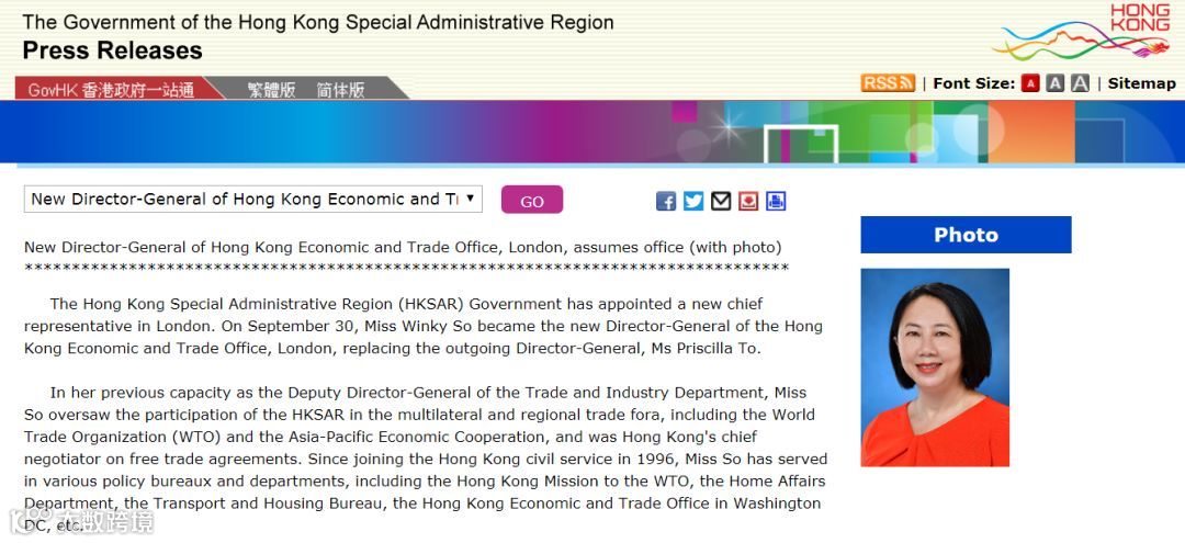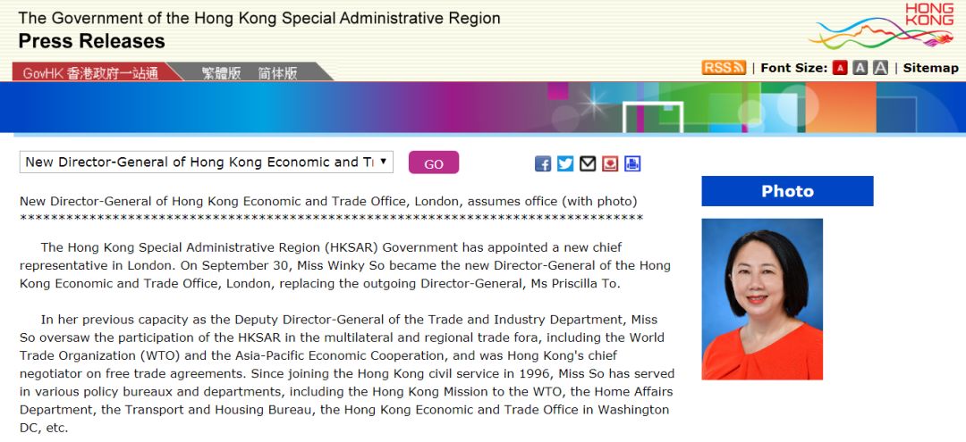 第一封来自香港驻伦敦经济贸易办事处处长苏婉玲(Winky So, director general of the Hong Kong Economic and Trade Office in London),来信内容主要介绍香港特区政府和警方止暴制乱的情况。