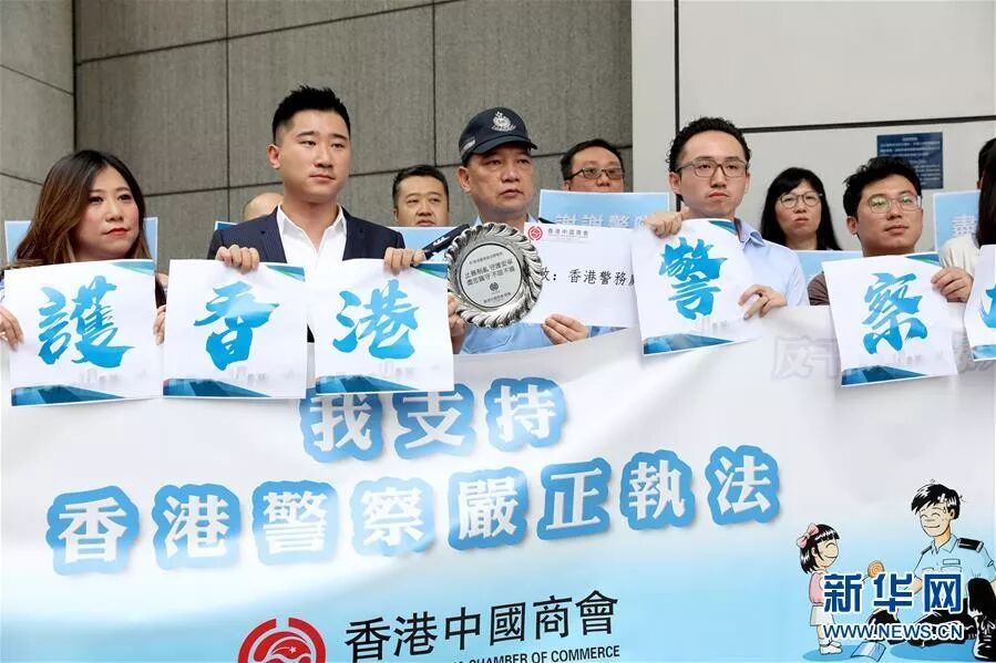 8月14日,香港中国商会会员一行30余人来到香港警察总部表达慰问和声援,支持警方严正执法,守护香港。 新华社记者 吴晓初 摄