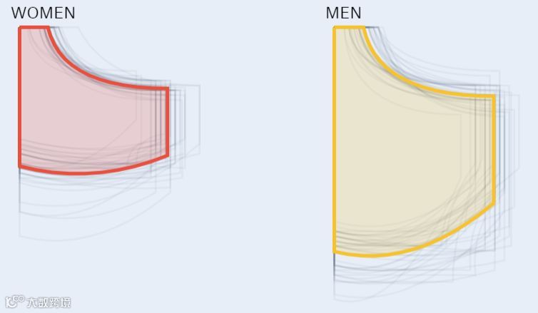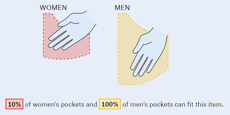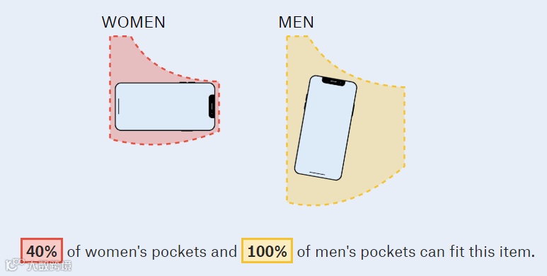 平均而言,女裤口袋比男裤口袋短48%,窄6.5%。