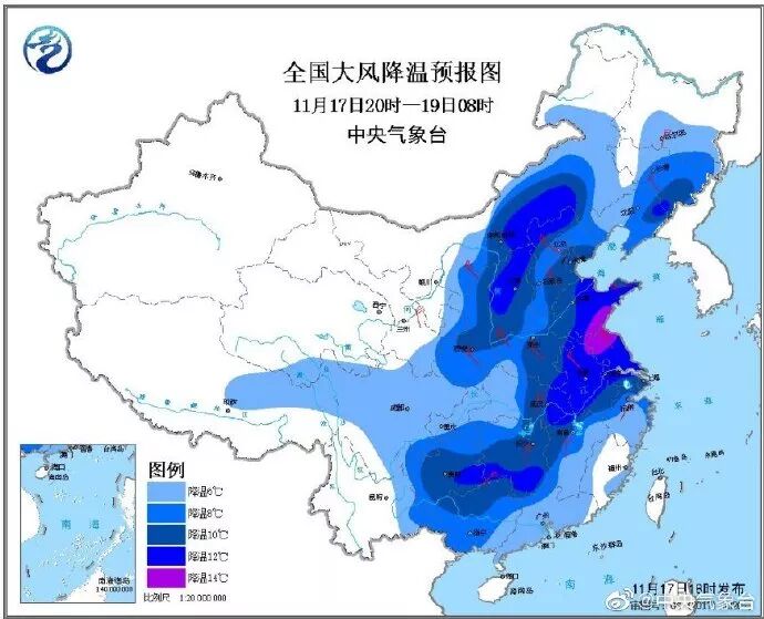 11月17日下午,中央气象台发布中东部大风蓝色预警以及东北地区吉林和黑龙江暴雪黄色预警。
