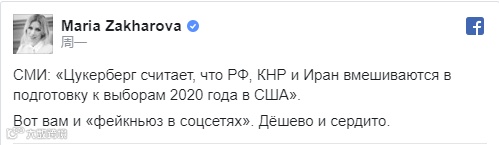 俄罗斯外交部发言人扎哈罗娃也对扎克伯格的此番言论进行了回应。