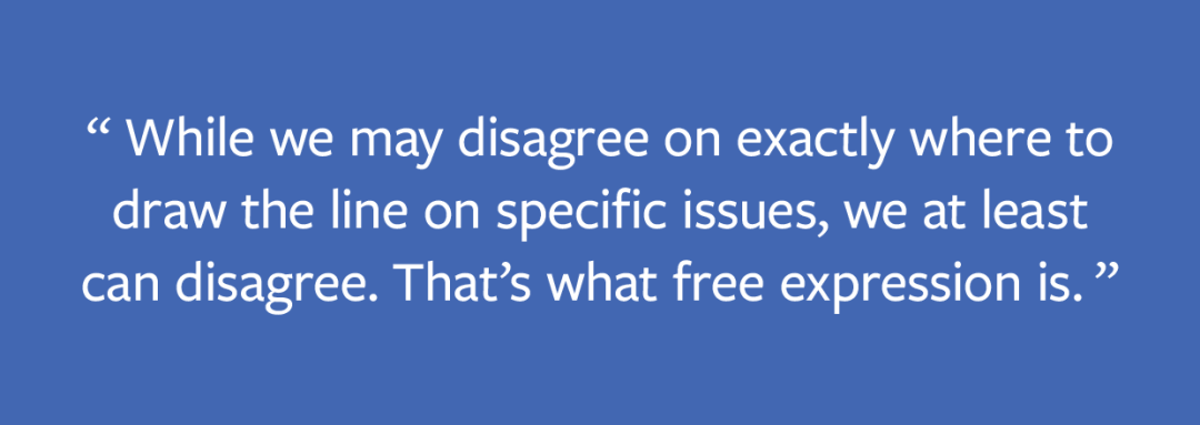 扎克伯格:我们也许在某些特定问题上如何划定界限存在异议,但至少我们能够表达不同意见。这就是言论自由。