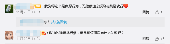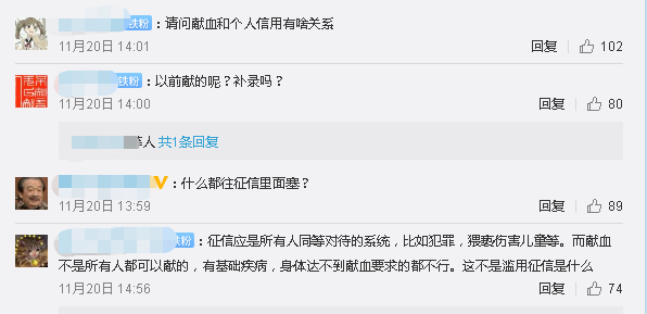 对于无偿献血纳入社会征信,很多网友表示,献血与个人信用并没有多大关系。