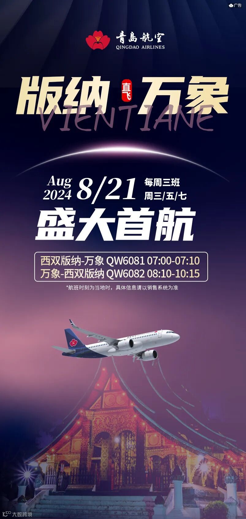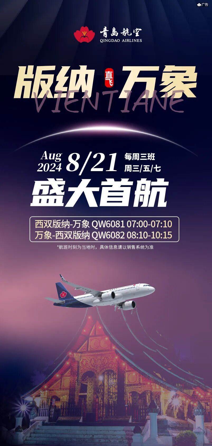 “西双版纳 ⇌万象”国际航线的开通践行了青岛航空“打造差异化、国际化的航空公司”的战略定位,同时也将进一步提升西双版纳州面向东南亚的航空枢纽地位。