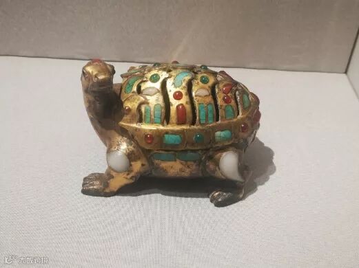 “电镀金镶人工合成绿松石以及不知名合成宝石的乌龟,把电镀工艺和人造宝石的历史向前推进了两千多年” 来源:公众号“江上说的”