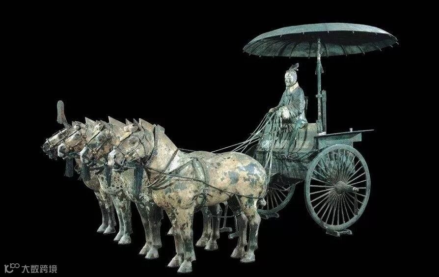 改装版的有六匹马的秦始皇陵铜车马 来源:公众号“江上说的”