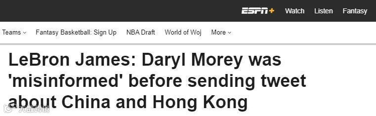ESPN:詹姆斯:莫雷在发布香港推特前被误导了