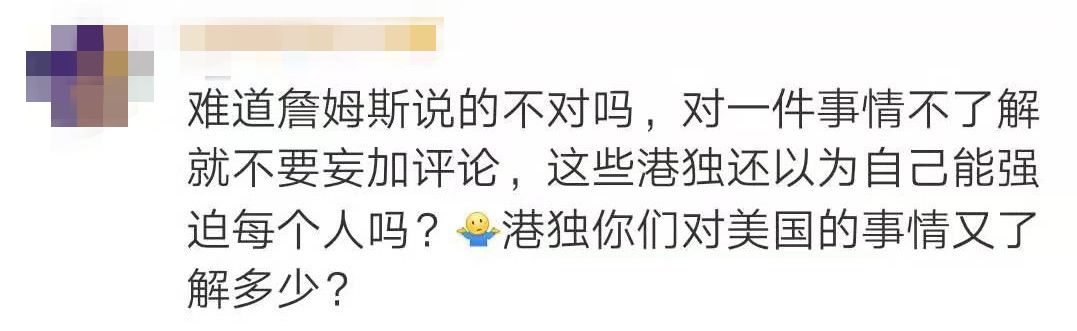 詹姆斯说了句公道话,他表示,虽然我们总说言论自由,但在没了解具体情况时就发声,之后很多人可能因此受到伤害。