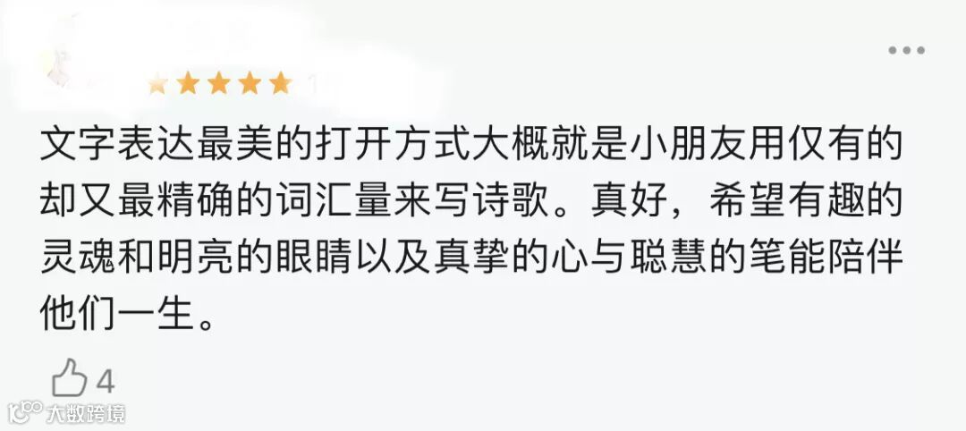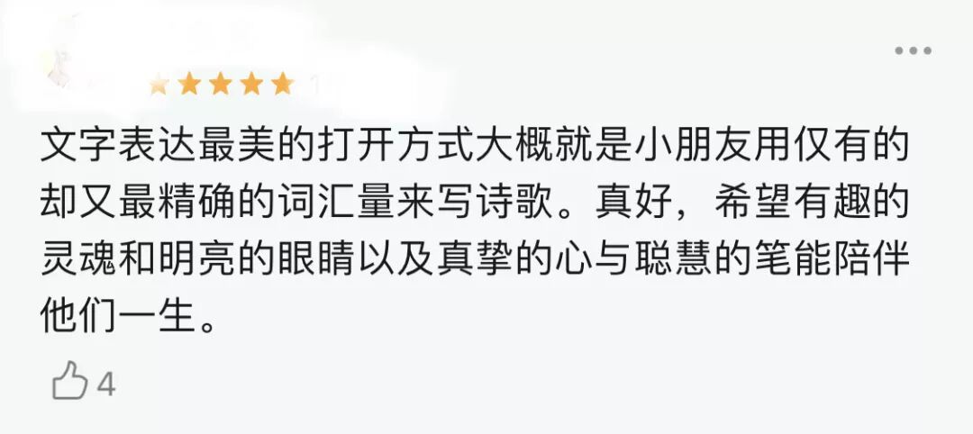 《孩子们的诗》语言简单,击中人们心中都有的诗意。不论什么年龄的读者,都会被这些诗句感动,在豆瓣上广受好评,网友无不赞许。