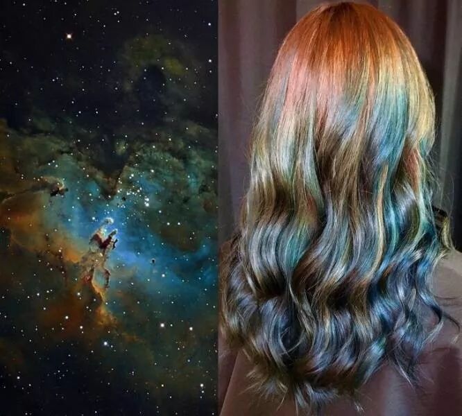 小姐姐的大自然配色染发作品有很多,比如:星空。