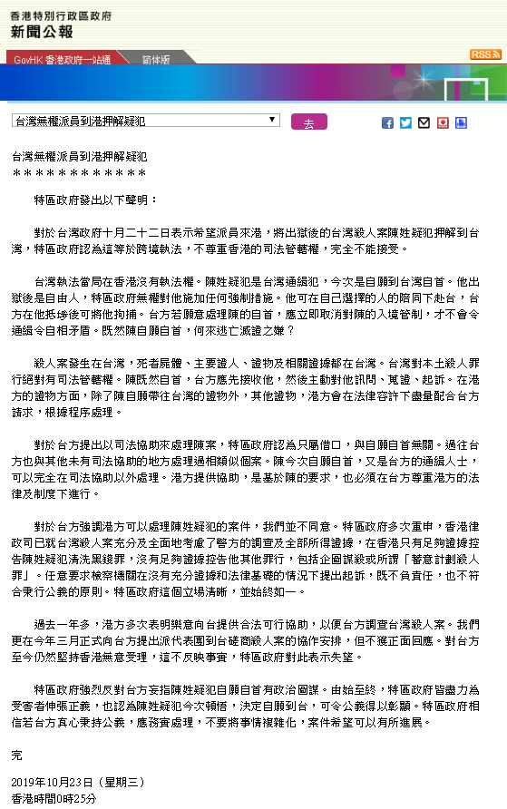 香港特区政府23日声明全文如下↓↓