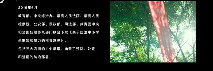根据最高人民法院去年发布的《校园暴力司法大数据专题报告》,校园暴力案呈逐年下降趋势,2015年全国法院一审审结校园暴力案1000多件,2016年、2017年分别同比下降16.51%和13.37%。其中,11.59%的案件受害人死亡,但是每一起个案都让人揪心。
