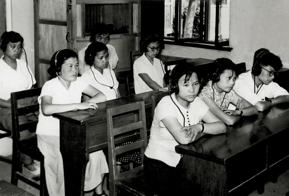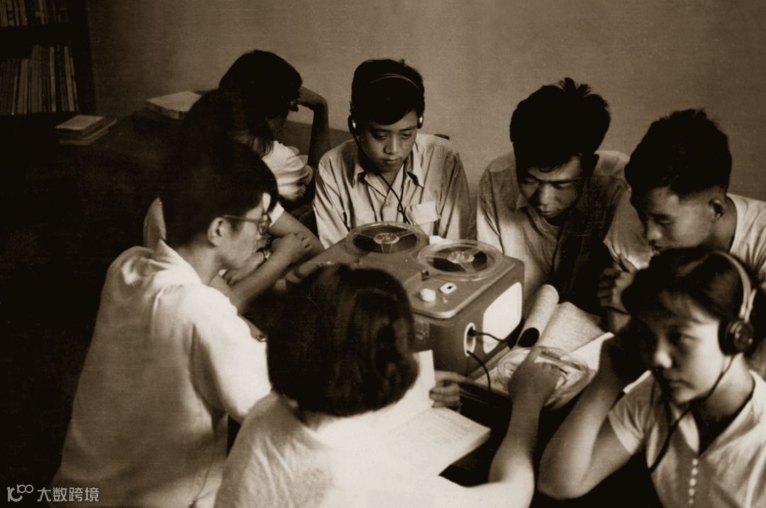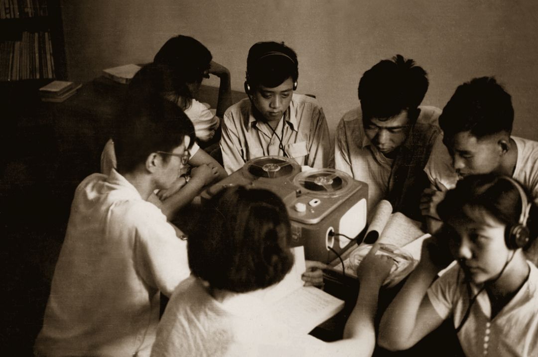 上世纪60年代,北外学生一起进行听力学习 (北外校史馆 供图)