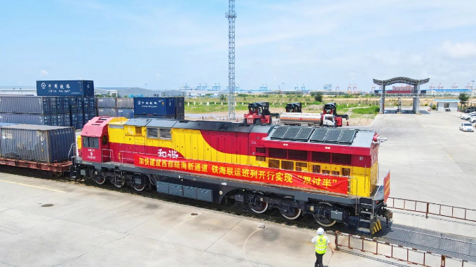 广西北部湾国际联运发展有限公司市场部业务员李清华介绍,“今年以来,北部湾港海铁联运班列累计4次完成单班超700标箱的倒运任务,北部湾港海铁联运班列集装箱倒运效率达845标箱/班次、同比增长15%,单日最高装车量达834车/日、同比增长26%。”国铁集团对新通道班列运力运能给予了大力支持,4月1日起增加海铁联运班列图定4列,目前图定班列达到16列,北部湾港至西南方向列车运行时长减少约33%。