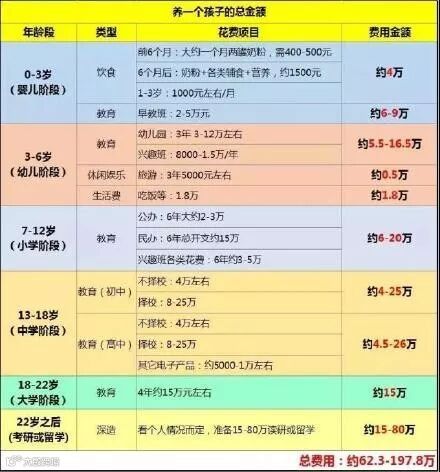 网上有人粗略估计过,在中国养大一个孩子可能需要花60-200万。
