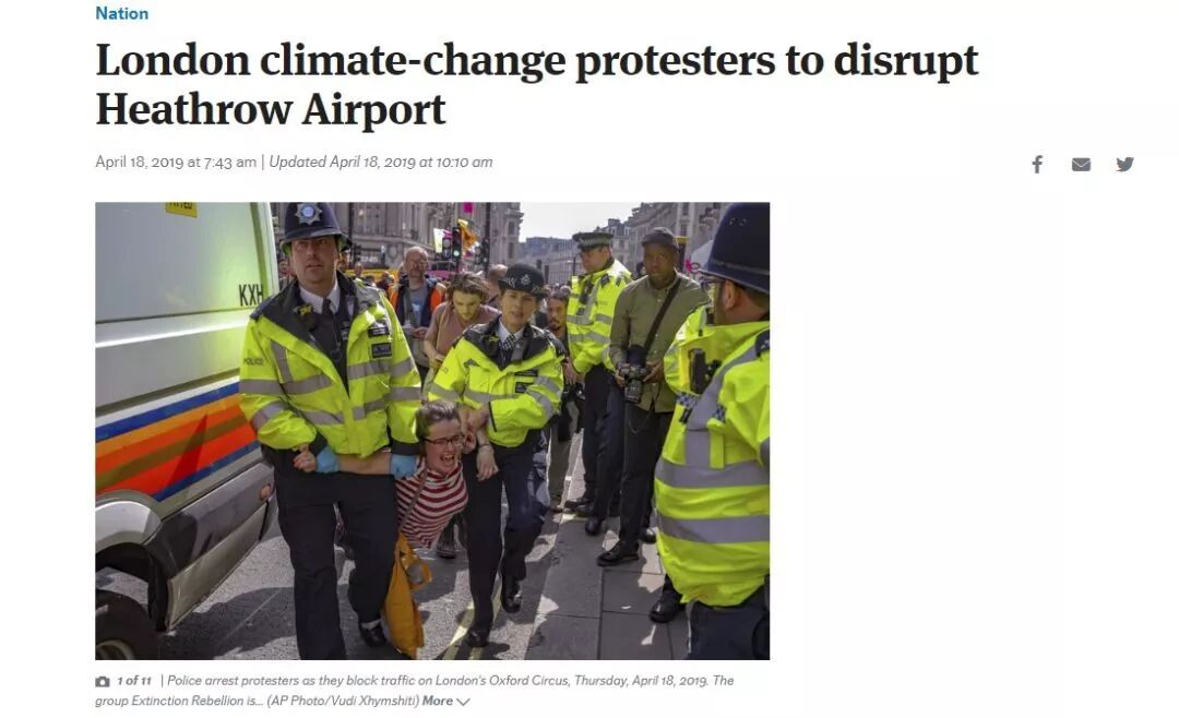 还有更疯狂的。英国《卫报》本月早前报道称抗议者们在伦敦机场举行抗议活动,反对政府对机场扩建的支持。