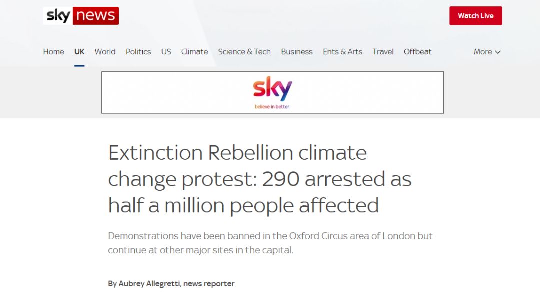 今年4月份,气候变化抗议组织“反抗灭绝”(Extinction Rebellion)以他们形形色色故意搞乱的抗议示威方式成功吸引了大量关注。