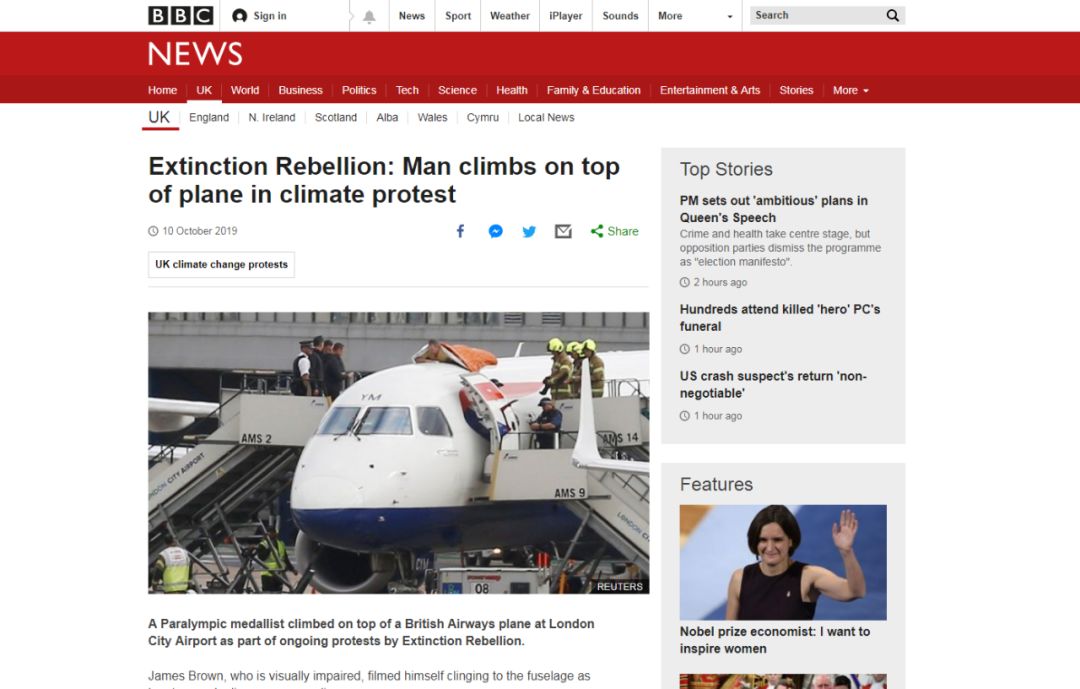 这一举动引爆了伦敦各大媒体。实际上,这个爬飞机的举动只是示威者计划瘫痪机场计划的一部分而已。