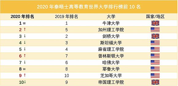 The University of Oxford once again tops the table, with its rival UK institution, the University of Cambridge, dropping to third place behind the California Institute of Technology.
