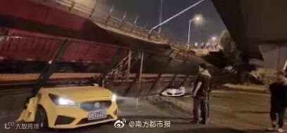 Wuxi police confirmed that one car was parked under the overpass and no one was inside, while the other two were passing by the site on the 312 National Road at around 6:10 pm.