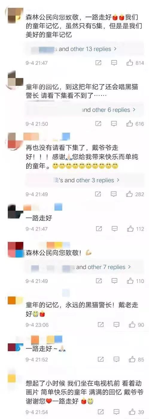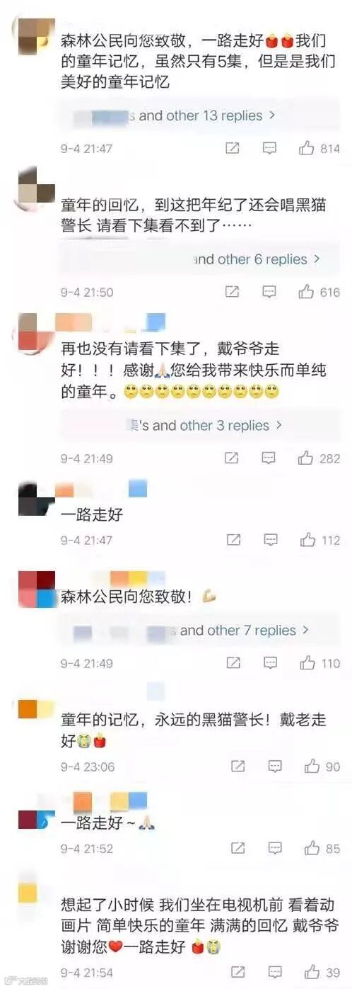 在戴老为数不多的采访里,他曾对看《黑猫警长》长大的晚辈充满怜爱地说:“你们还年轻,未来的路还很长,要过好每一天,抓住幸福。我呢,尽管已夕阳西下,但也要过好每一天。”