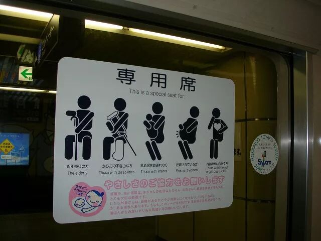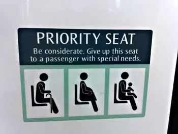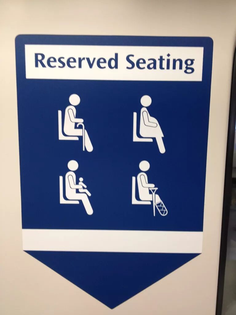 所以,不需要出现上述的字眼,因为当人们在公共交通工具上看到priority seat(优先座)、courtesy seating(礼貌座)或reserved seating(预留座)时,就已经心领神会了。