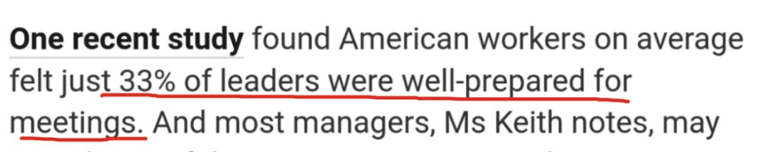 这里还用上美国一份新近出炉的研究。这份超过一千人的问卷显示,在美国,只有1/3的员工觉得老板在开会时做了充分准备。