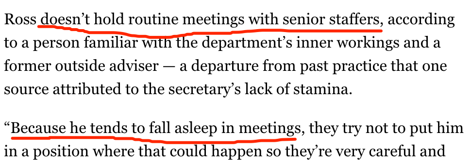 美国商务部长罗斯被曝出,只要一开会,他就打瞌睡。
