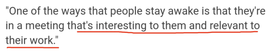 但是,今天推荐的这篇文章,并不是因为讲得一手名人好花边,而是针对“开会犯困”这一普世难题,他家给到了六条建议。