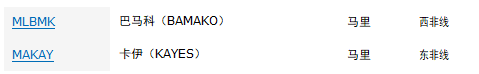 马里的港口主要有:巴马科和卡伊。下列为港口的基本信息: