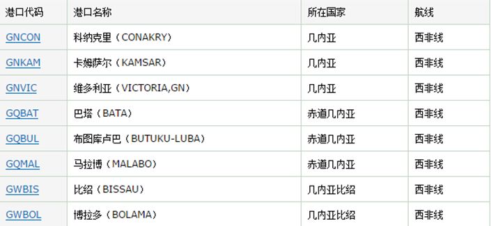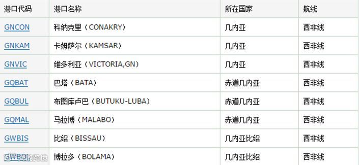 几内亚要办理 ECTN 的港口主要有:科纳克里、卡姆萨尔及维多利亚等,下列为几内亚部分港口的信息: