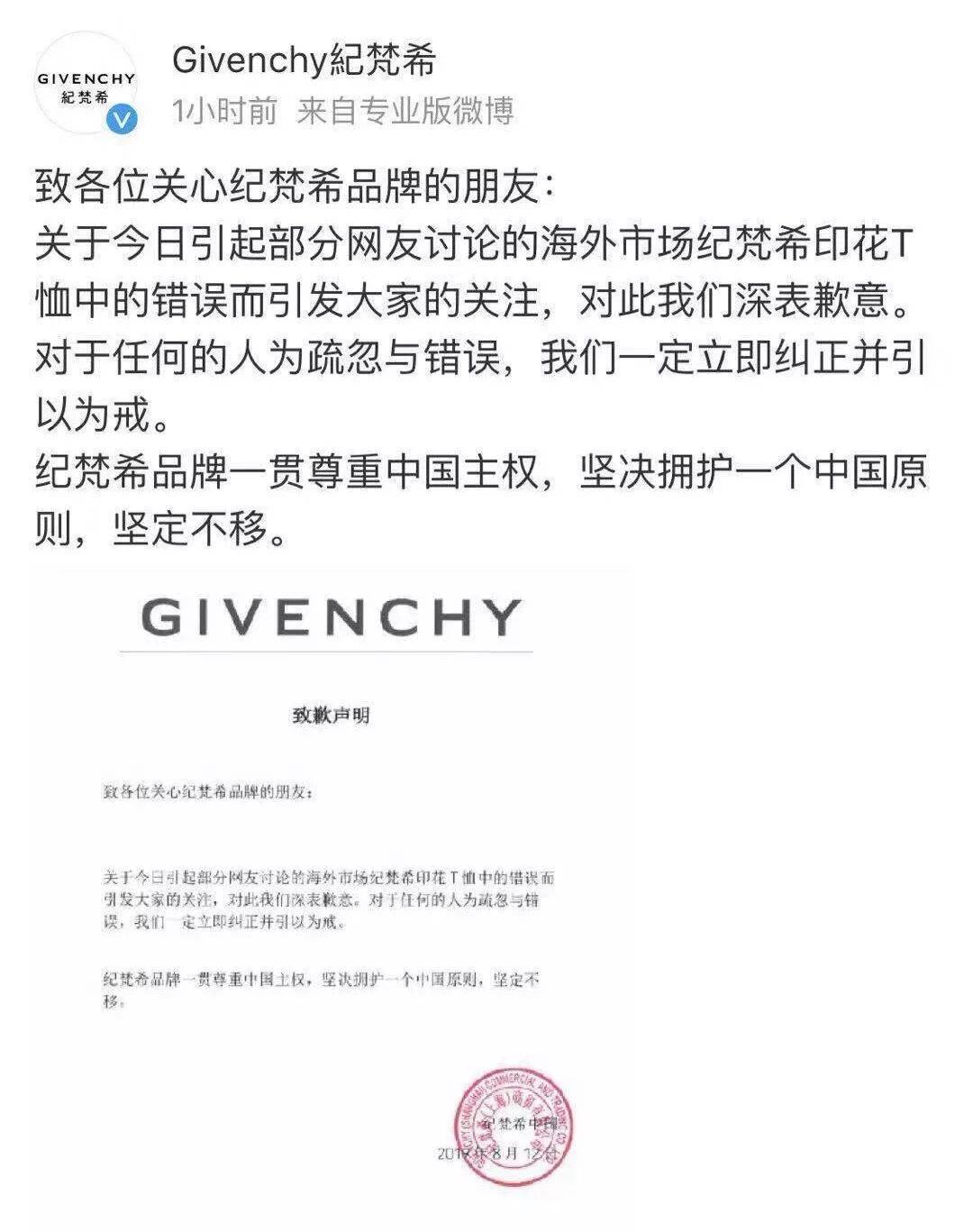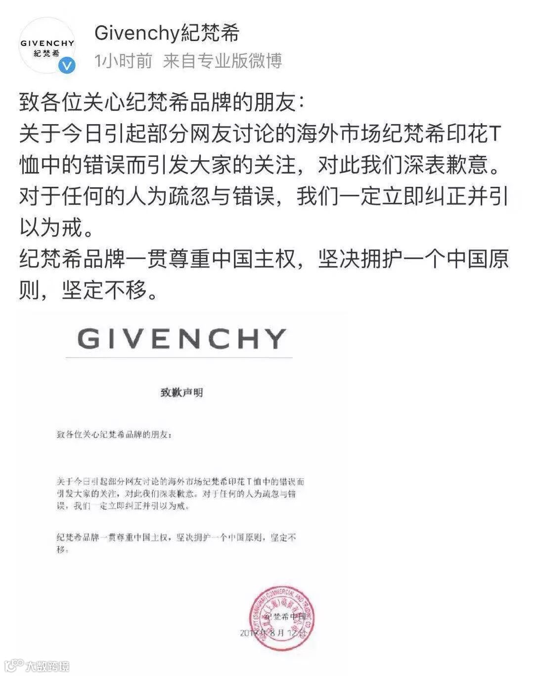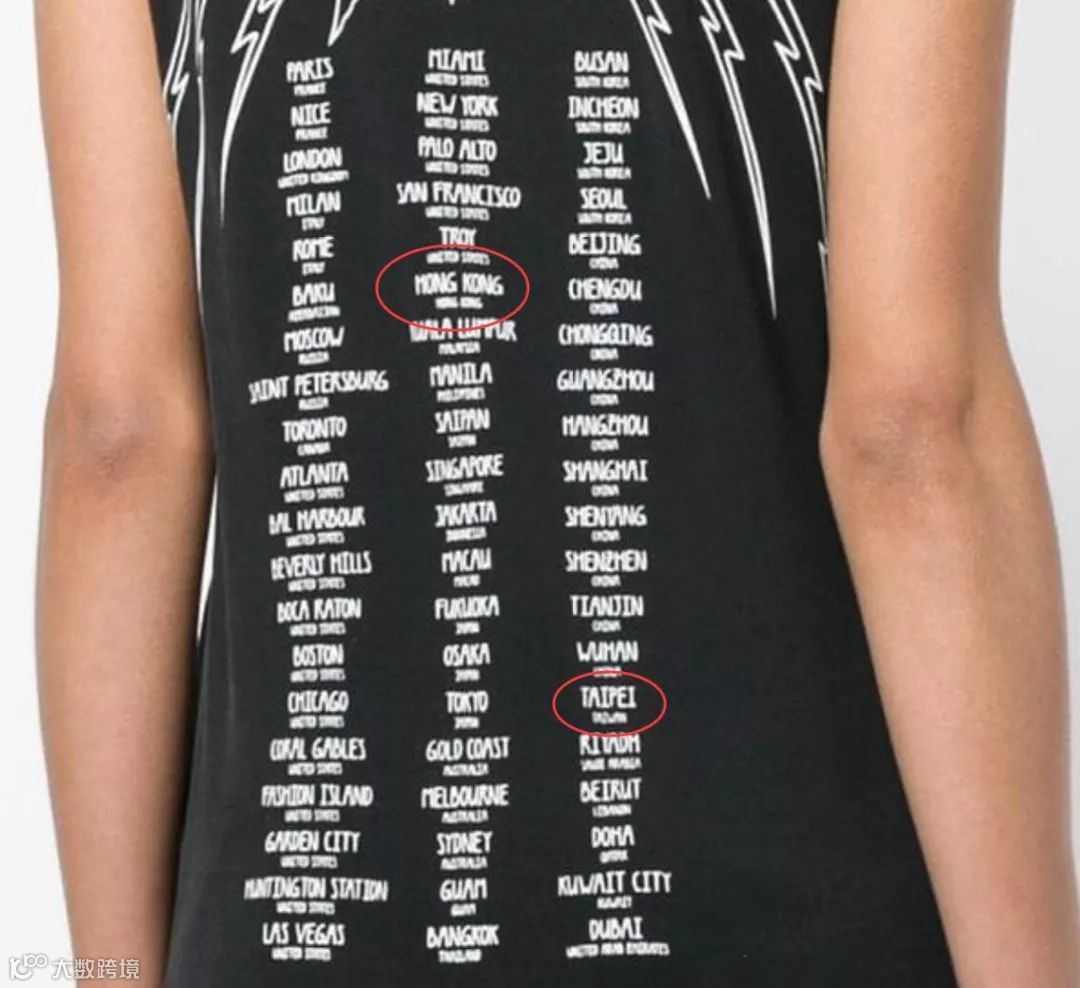 12日,有网友爆料,法国时装品牌纪梵希(Givenchy)把香港和台湾列为国家印在T恤上。