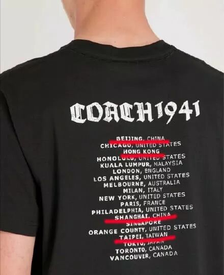 同天上午,美国时尚品牌蔻驰被扒出不尊重中国主权的T恤,将香港、台湾与其他国家并列。
