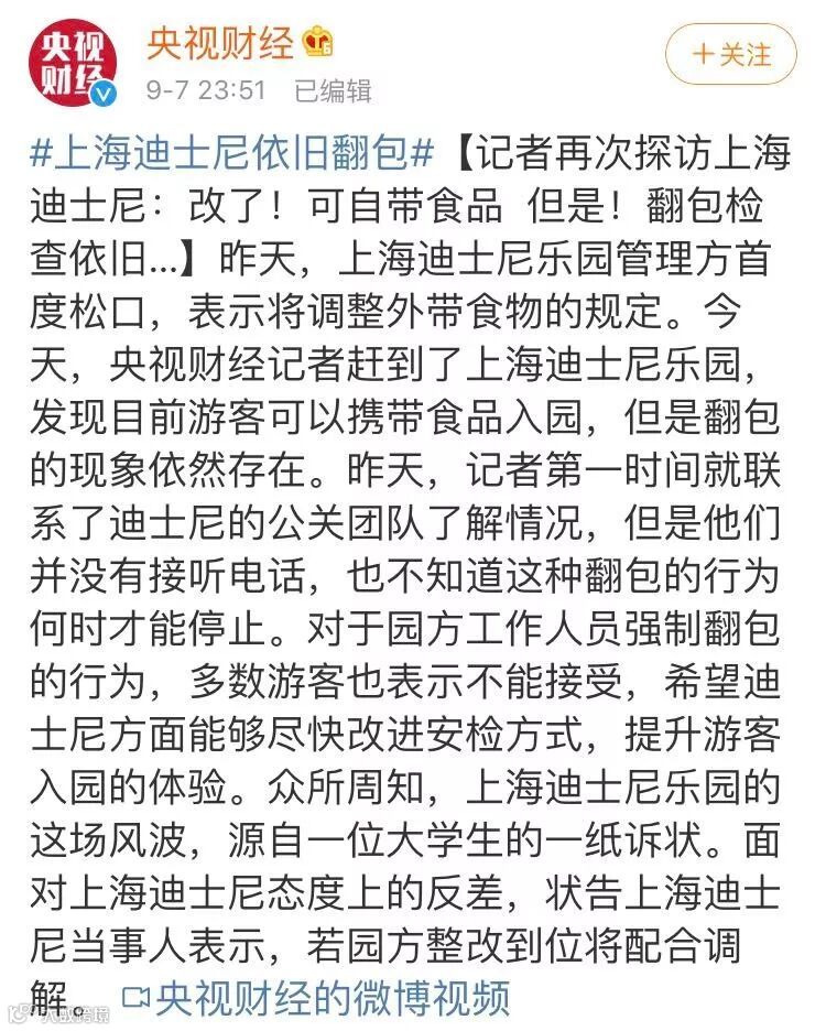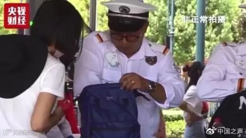 据@央视财经7日报道,在上海迪士尼乐园,游客可以携带食品入园,但是翻包的现象依然存在。