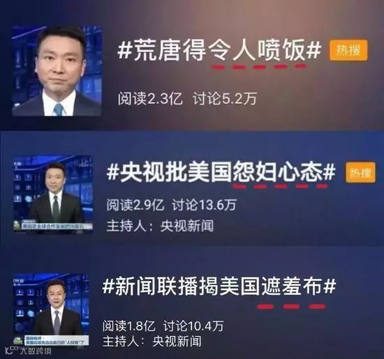 同时,国际媒体也注意到这一现象。包括《华尔街日报》、《纽约时报》、BBC、CNN以及Fox等都引用了来自《新闻联播》的内容。