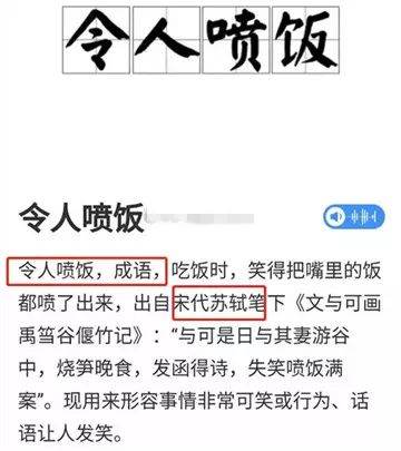 当然,网友们也指出“喷饭”可是有出处的,跟大文豪苏轼的一篇文章有关: