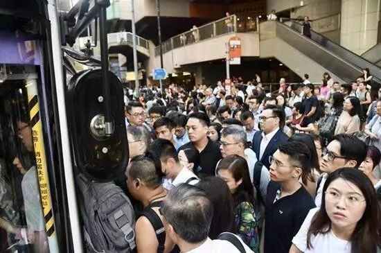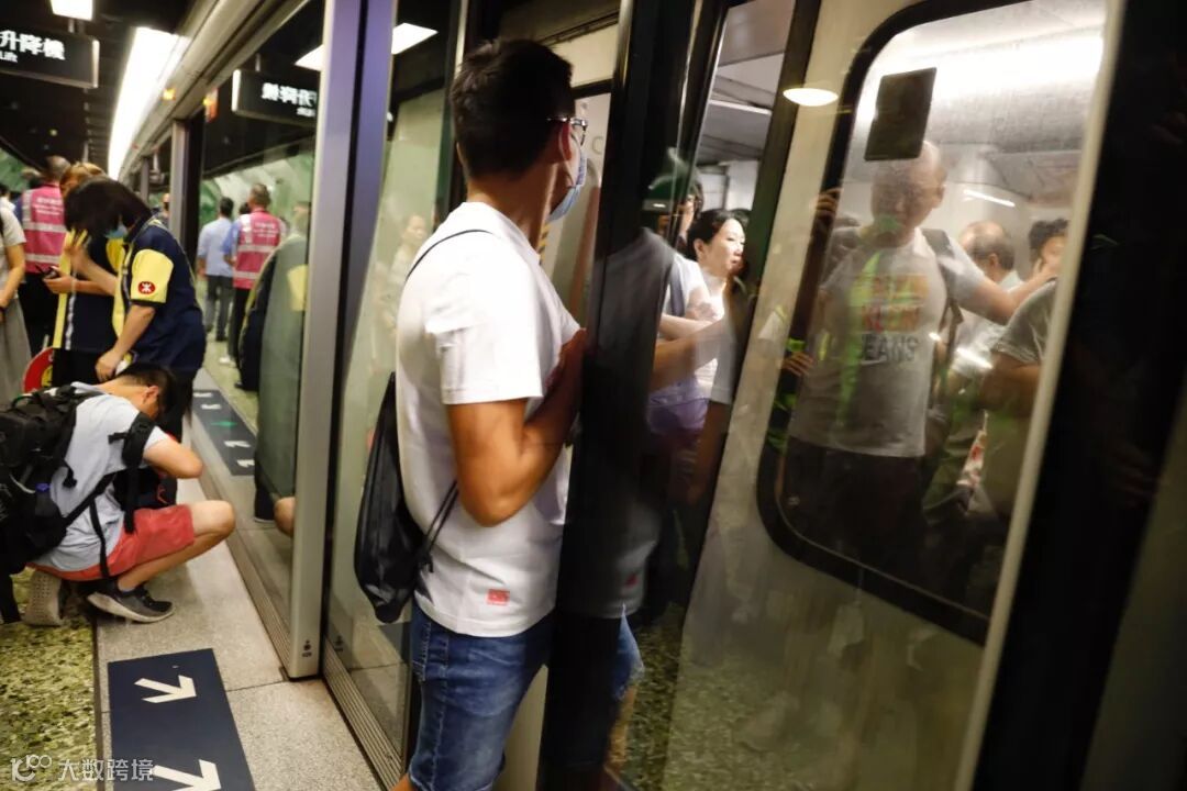 周一早上,大量轨道和公交服务停运,通勤乘客苦于无法准时上班。一些抗议者阻挠火车离站,更有一些抗议者挤在车门内堵住入口。