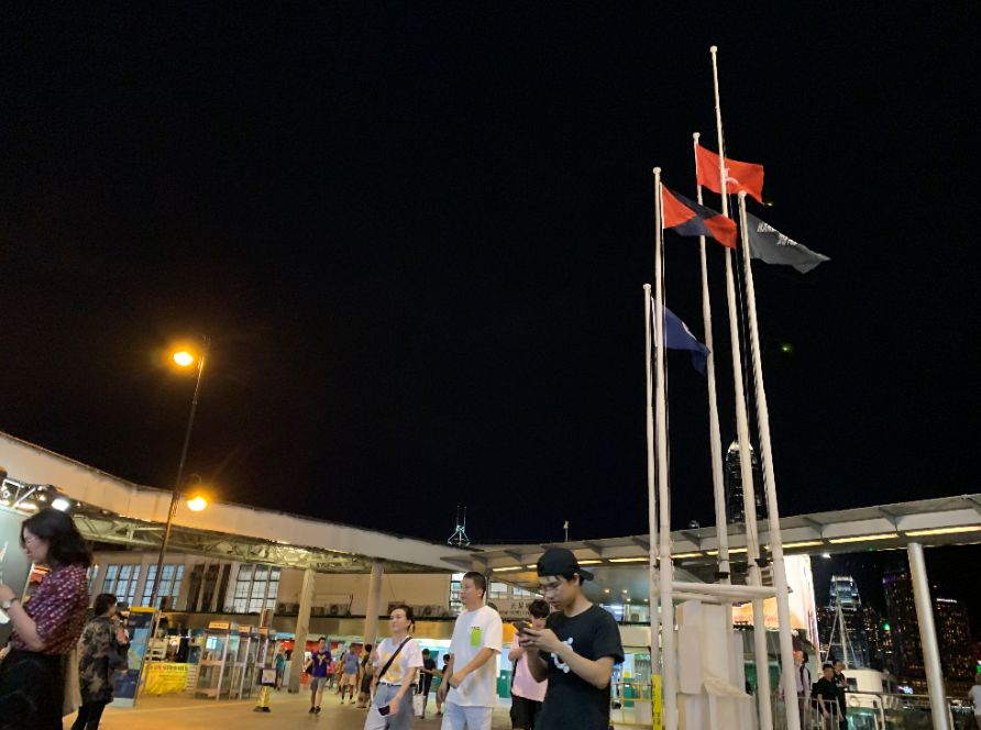 8月5日晚,一部分极端激进分子来到香港尖沙咀天星码头,再次扯下“五支旗杆”上的国旗,并把国旗扔到海里。