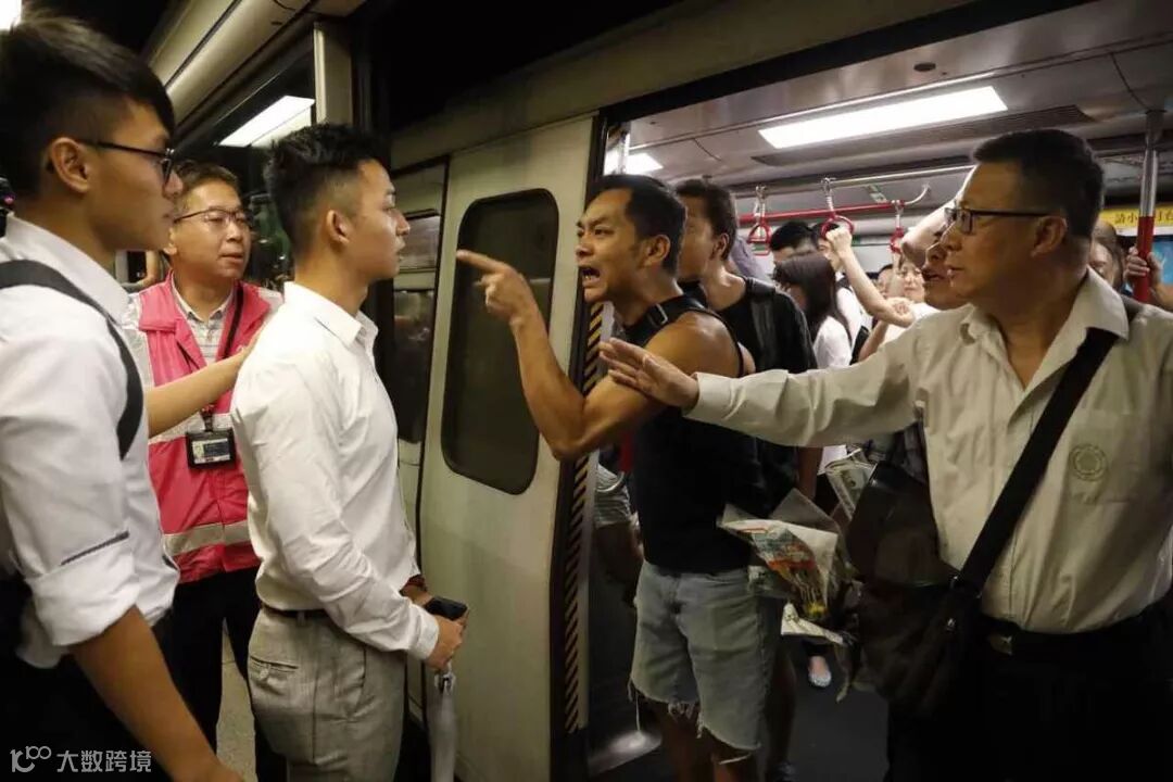 5日上午,香港一名乘客痛斥阻碍交通运行的抗议者 图源:外媒