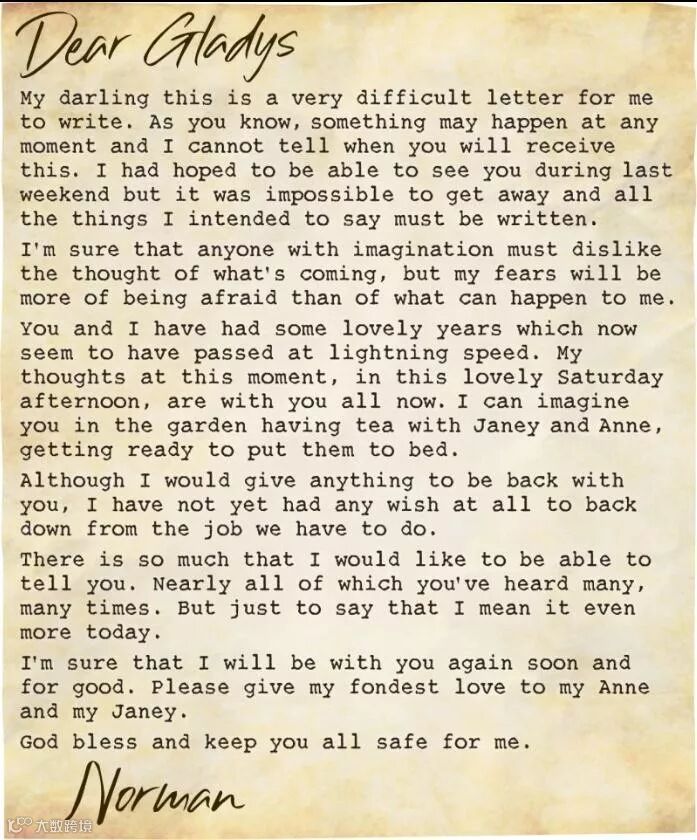 斯金纳上校在随部队抵达诺曼底后的第二天阵亡,人们在他遗体的上衣口袋里发现了这封家书。
