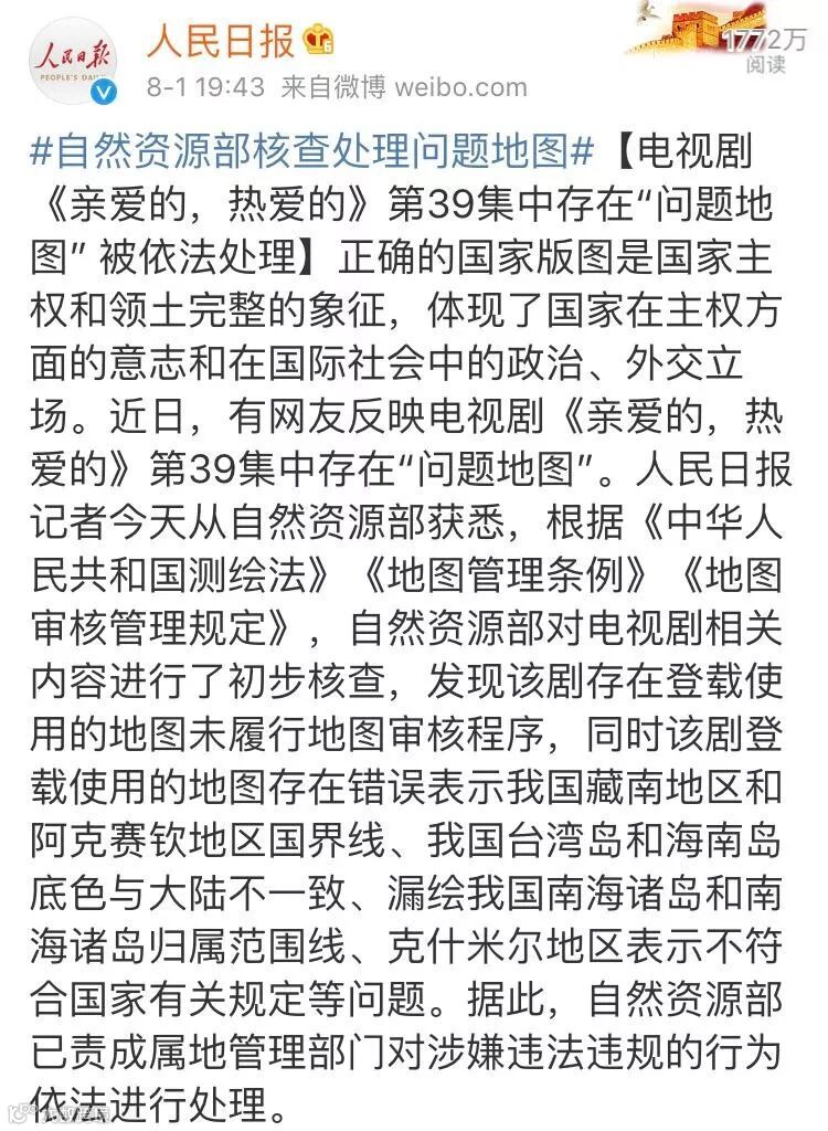 近日,热播电视剧《亲爱的,热爱的》第39集中存在“问题地图”一事,在网上引发轩然大波。