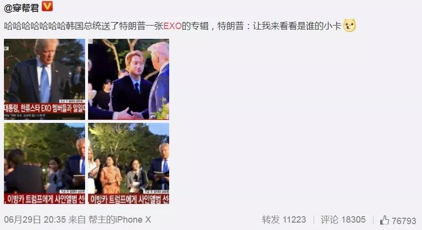 什么?EXO去青瓦台迎接美国总统了?这件事也迅速登上了热搜,引来网友围观。