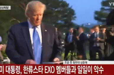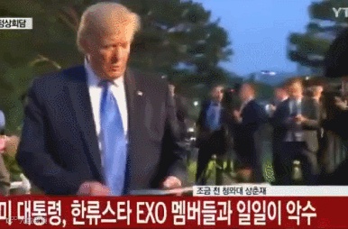 Trump traveled to Seoul to meet with President Moon Jae-in on the final day of the G20 Summit. When he arrived at the Blue House, the South Korean presidential office, Moon brought along the K-pop group EXO to welcome him.