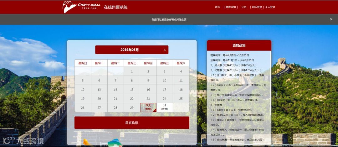 景区工作人员介绍,计划游览八达岭长城的游客,包括散客购票和旅游机构团队购票(individual and group tourists),可以登录八达岭长城官方在线售票系统(ticket.badaling.cn)、八达岭长城景区官网(www.badaling.cn)或者关注八达岭长城景区官方微信公众号,提前7天进行网上预约购票(purchase tickets seven days in advance)。预约购票成功的游客可持身份证直接入园。