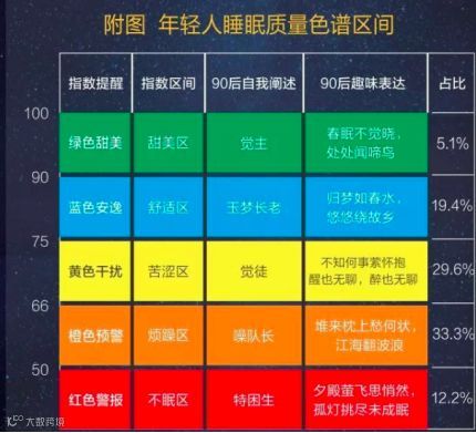 报告显示,只有5.1%的90后人群拥有甜美睡眠,33.3%的90后睡在“烦躁区”,12.2%睡在“不眠区”。