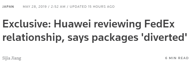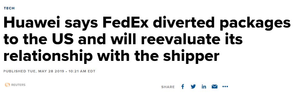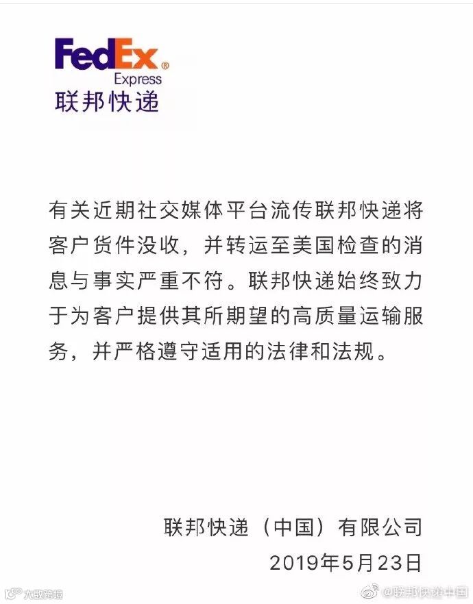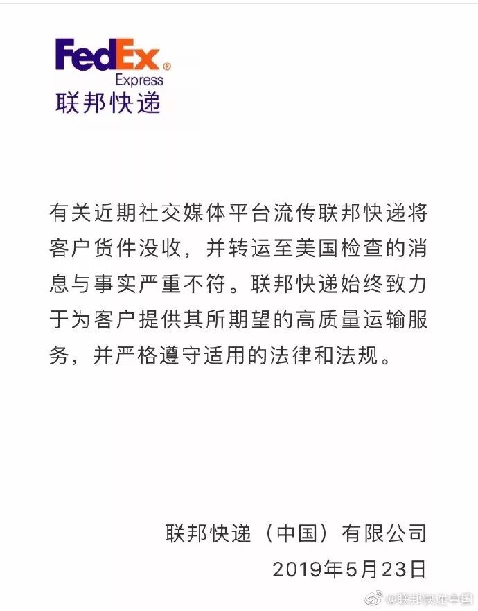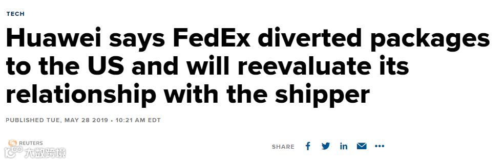 华为表示,联邦快递将包裹转运到美国,并且会重新审视和快递公司的关系。