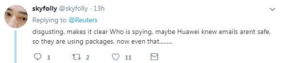 据路透社报道,华为表示,这四个包裹只包括文件,没有包含技术的东西。目前,华为已向中国邮政监管机构提出正式投诉,并表示正在调查这起事件。