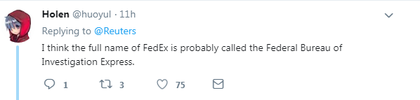 我觉得FedEx(联邦)全名应该是Federal Bureau of Investigation Express(联邦调查局快递,FBI Express)。